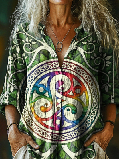 Women's Celtic Art Print Casual Cotton Linen Shirt