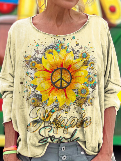 Women's Hippie Soul Sunflower Print Long Sleeve Top