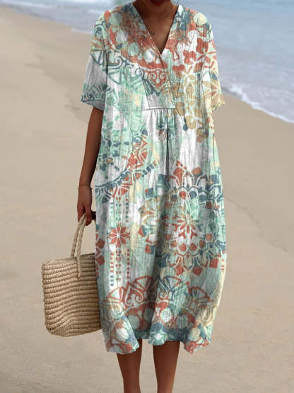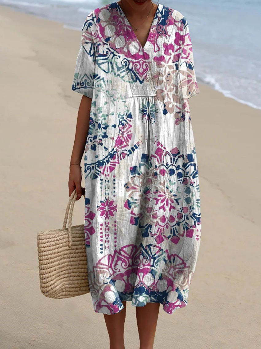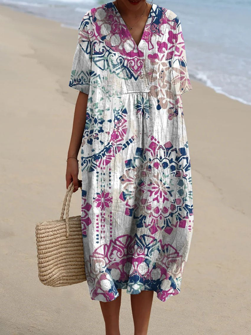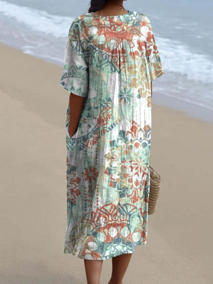 Women's Vintage Ethnic Floral Art Print Casual Flowy Dress