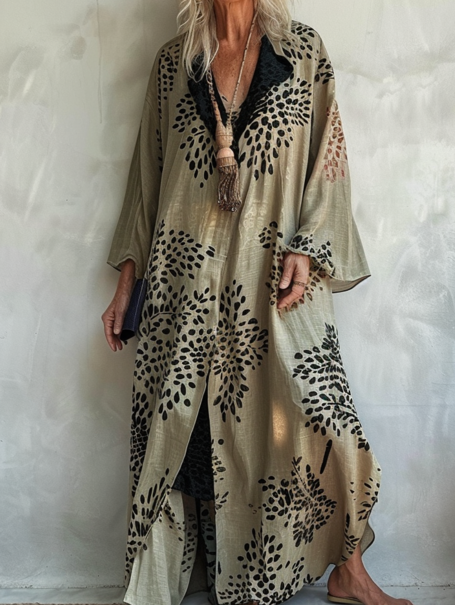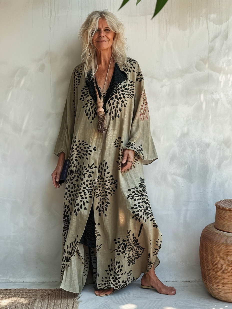 Linen Boho Stylish Printed Kaftan Maxi Dress