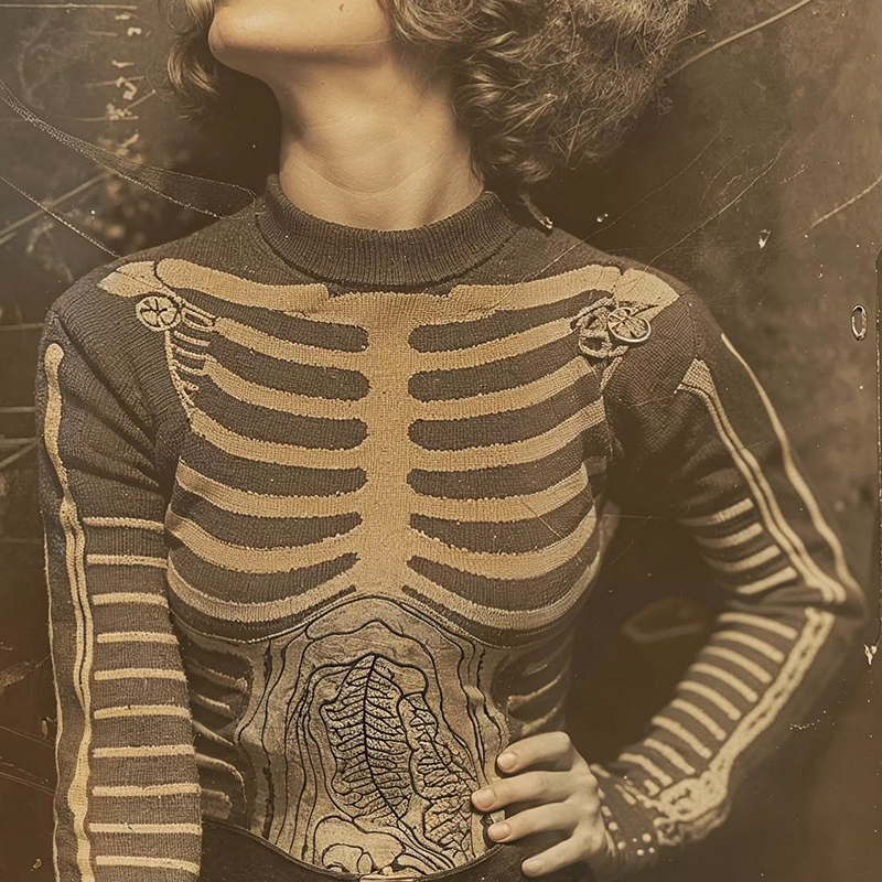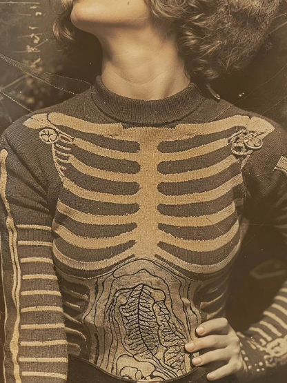 Vintage Halloween Anatomy Art Chunky Knitted Turtleneck Sweater