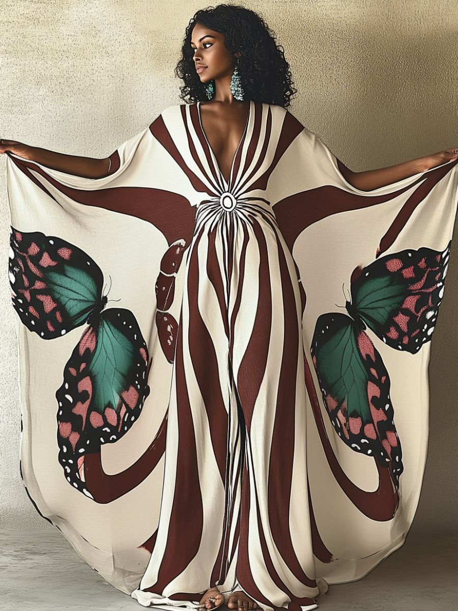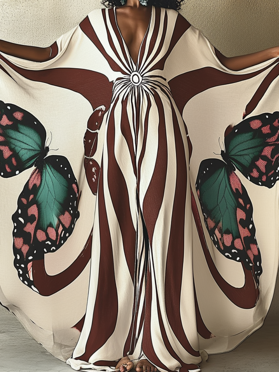 Sepia Papillon V-neck Long Kaftan