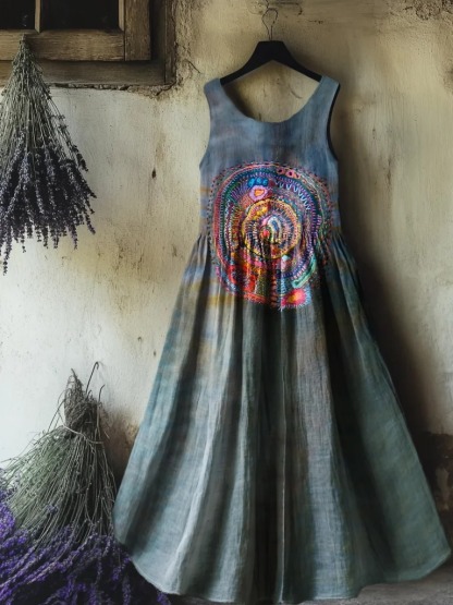 Sleeveless casual printed maxi dress