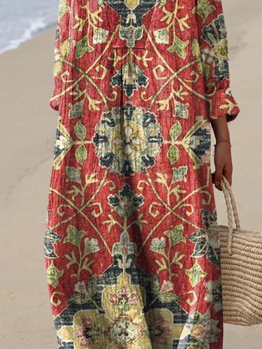 Women's Vintage Lovely Floral Art Print Flowy Dress