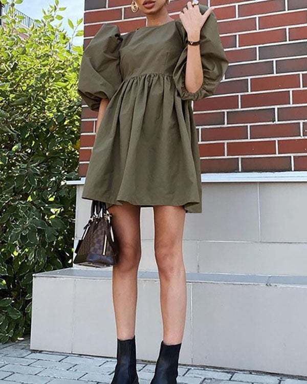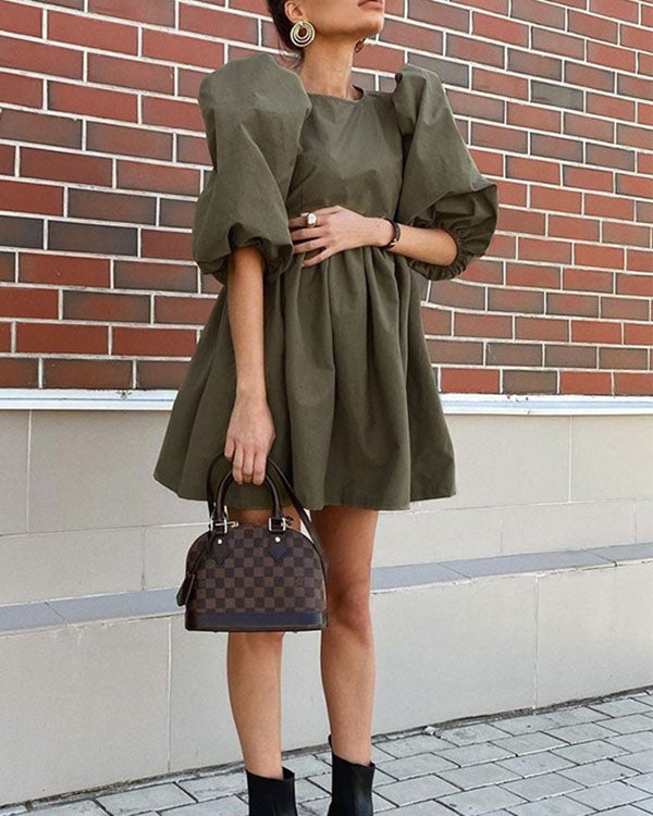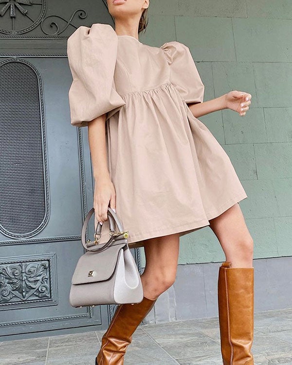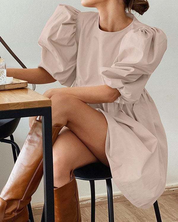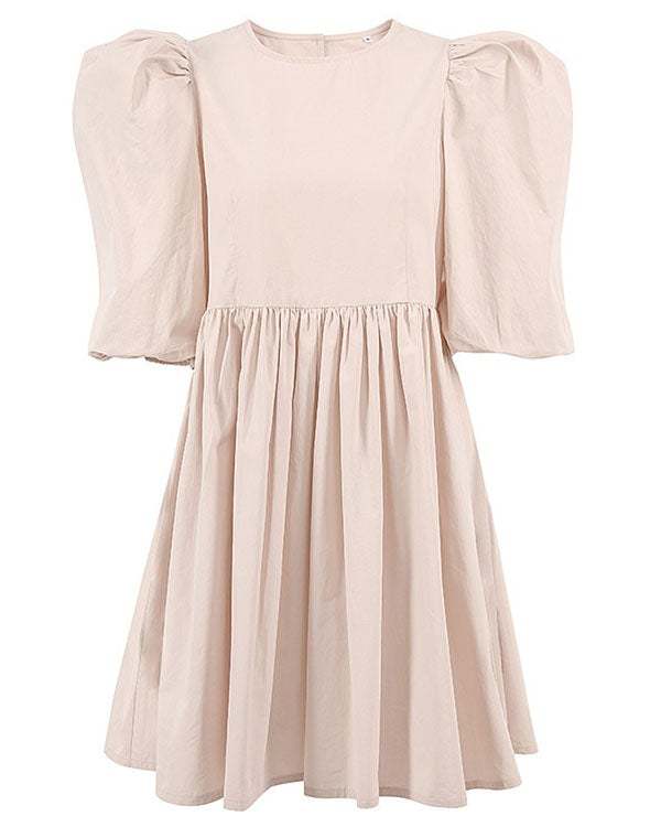 Puff sleeve round neck cotton loose dress