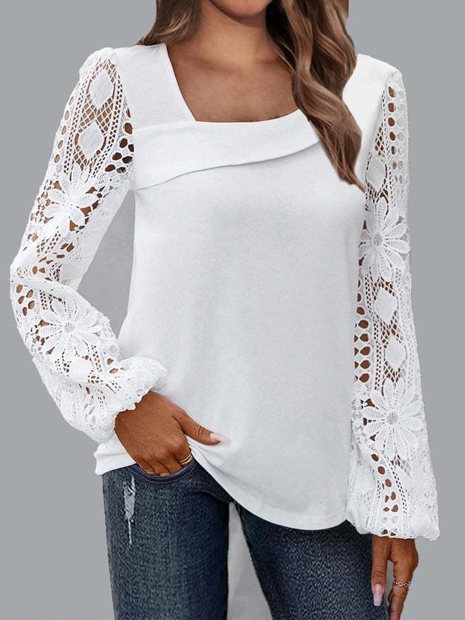 Spring And Autumn New Fashion Elegant Commuting Versatile New Lace Spliced Knitwear Versatile Top