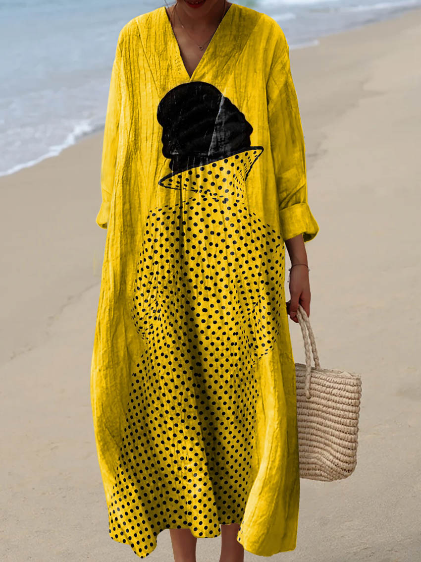 Women's Abstract Figure Pattern Art Print Cotton Dress