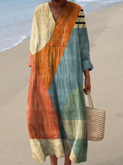 Women's Abstract Geometric Pattern Art Print Cotton Dress