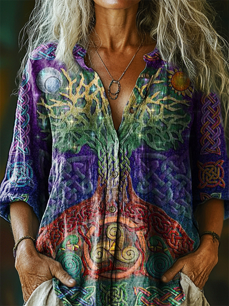Women's Celtic Art Print Casual Cotton Linen Shirt