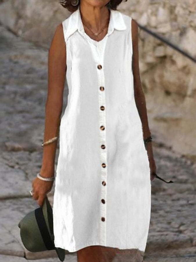 Women's Cotton and Linen Loose Sleeveless Casual Dress