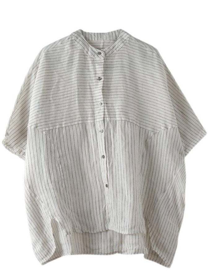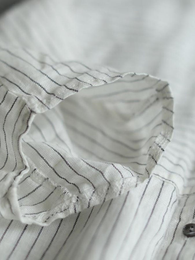 Women's Cotton And Linen Loose Striped Casual Blouse