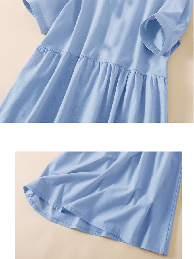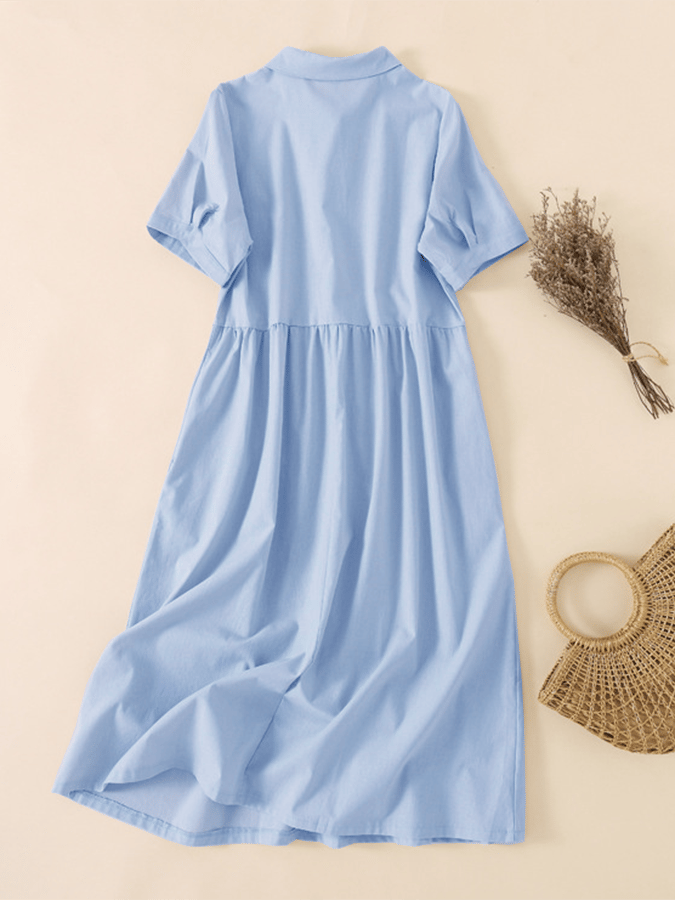 Women's Fashion Solid Color Baby Doll Neck Design Casual Pocket Dress