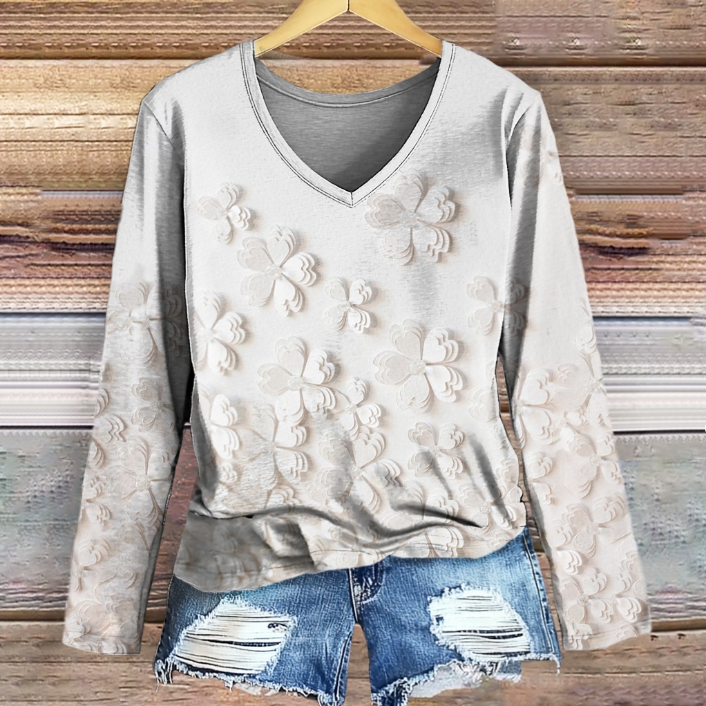 Women's Floral Art Print Casual V-Neck Long Sleeve T-Shirt