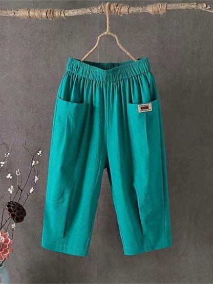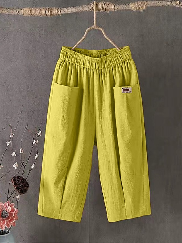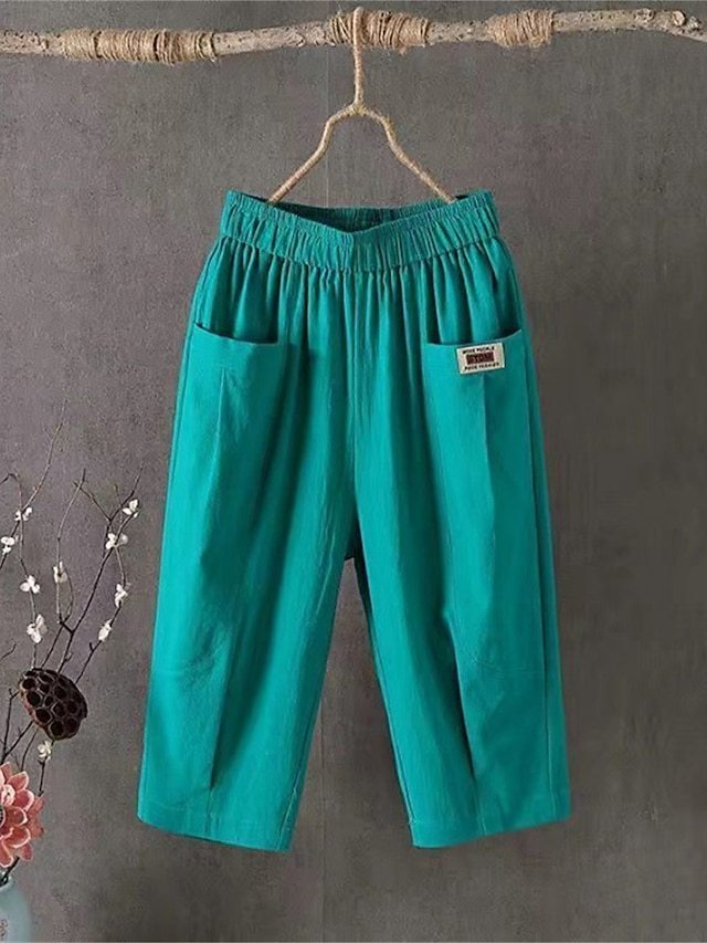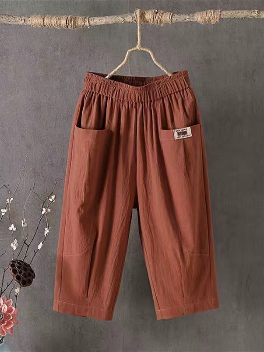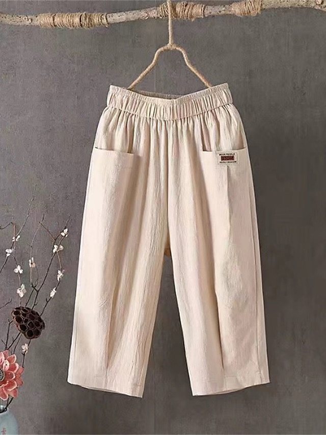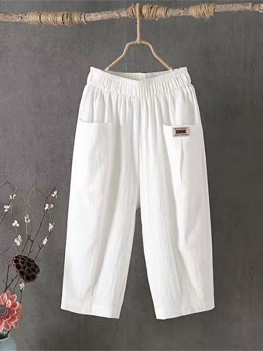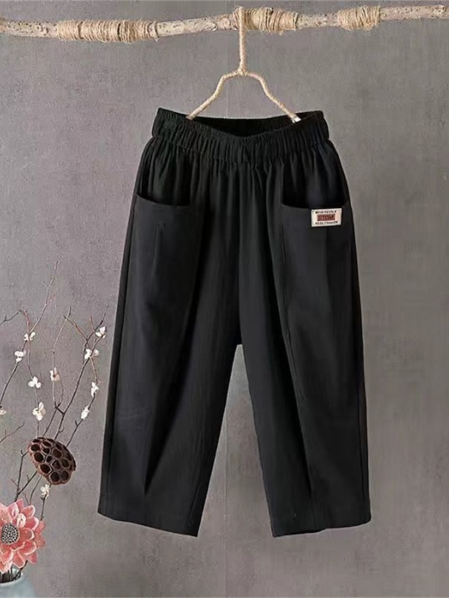 Women's Shorts Slacks Cotton Pocket High Waist Calf-Length Black Summer