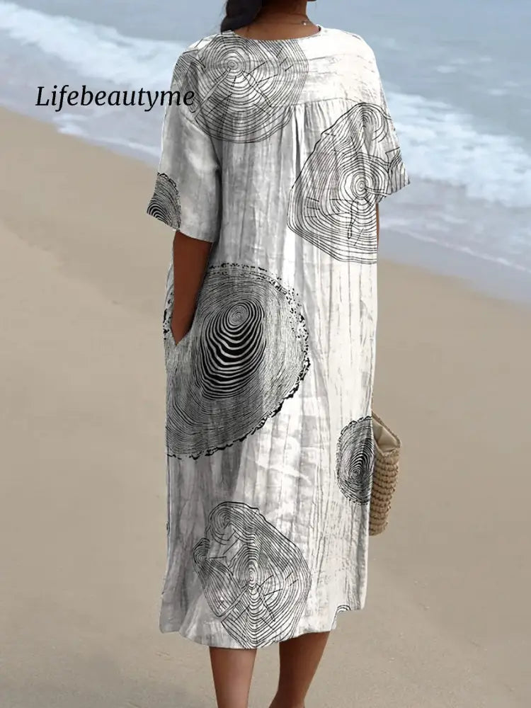 Tree Ring Repeat Pattern Printed Women's Flowy Dress