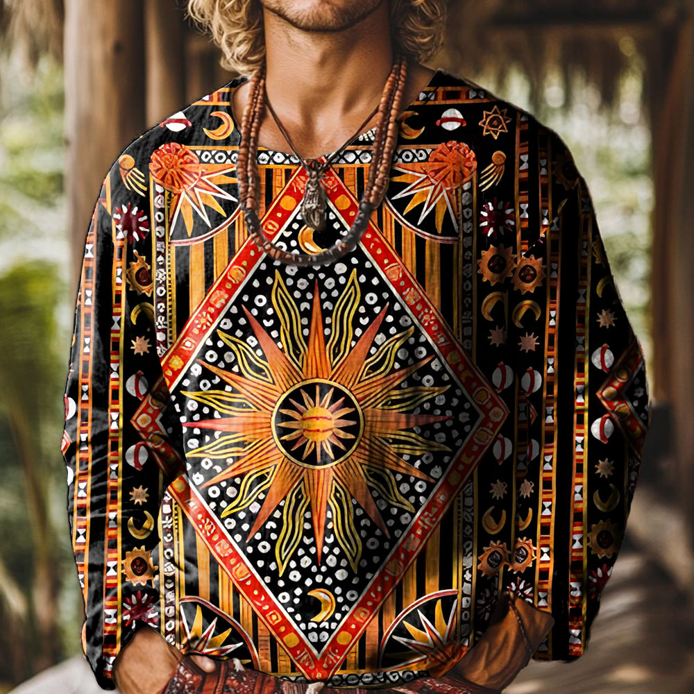 Abstract Geometric rhombus Ethnic patterns Vintage Print Casual 100% Cotton Shirt