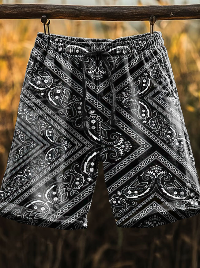 Black and white Paisley pattern Ethnic patterns Men's Comfy 100% Cotton Pants
