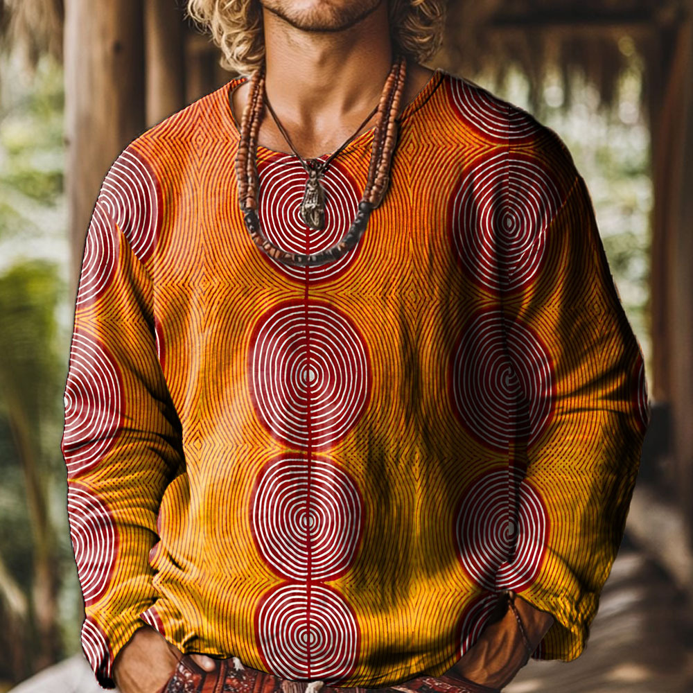 Ethnic geometric circle patterns Vintage Print Casual 100% Cotton Shirt