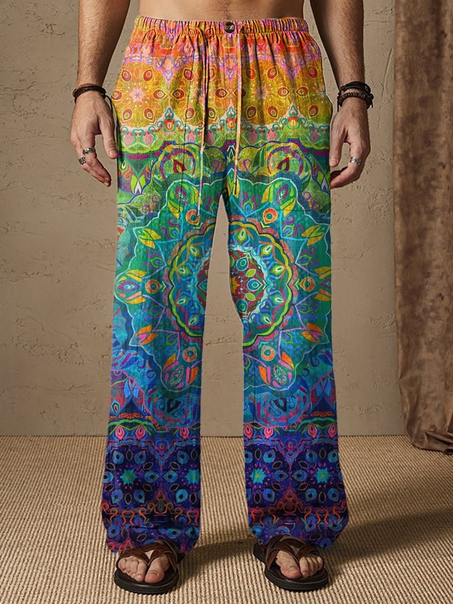 Men's Rainbow Gradient Retro Ethnic Floral Patterns Comfy 100% Cotton Pants