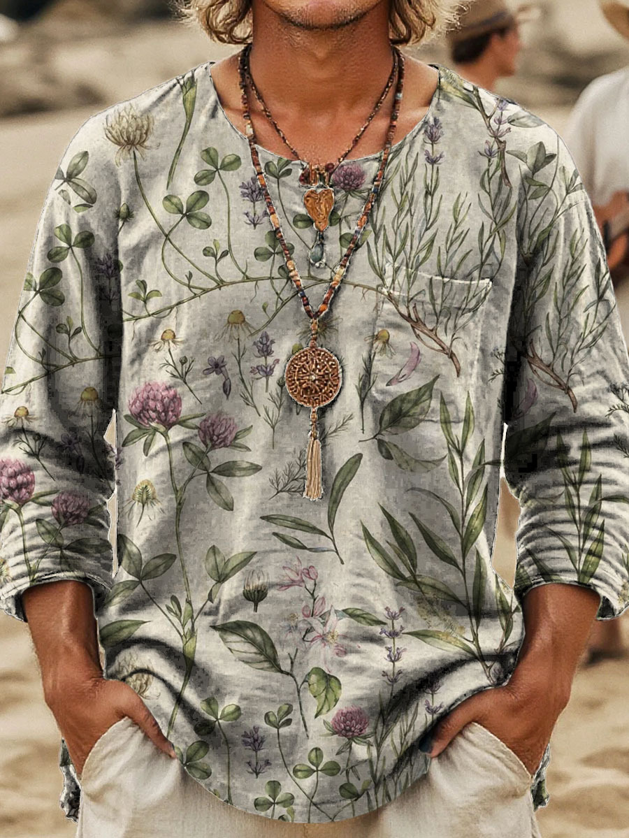 National floral patterns Vintage Pocket Print Casual 100% Cotton Shirt