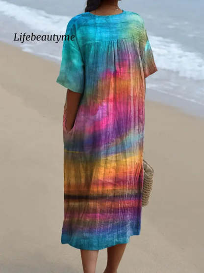 Oil Painting Sunset Scenery Art Printed Women's Flowy Dress