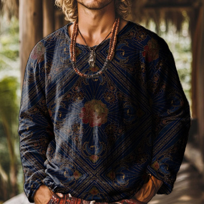 Retro Ethnic Complex Floral patterns Vintage Print Casual 100% Cotton Shirt