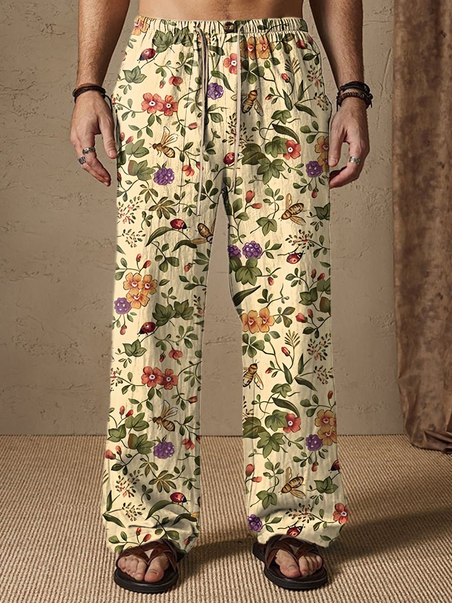 Retro Ethnic Style Flowers Men's Comfy 100% Cotton Pants