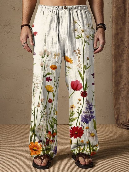 Retro Flowers Men's Comfy 100% Cotton Pants