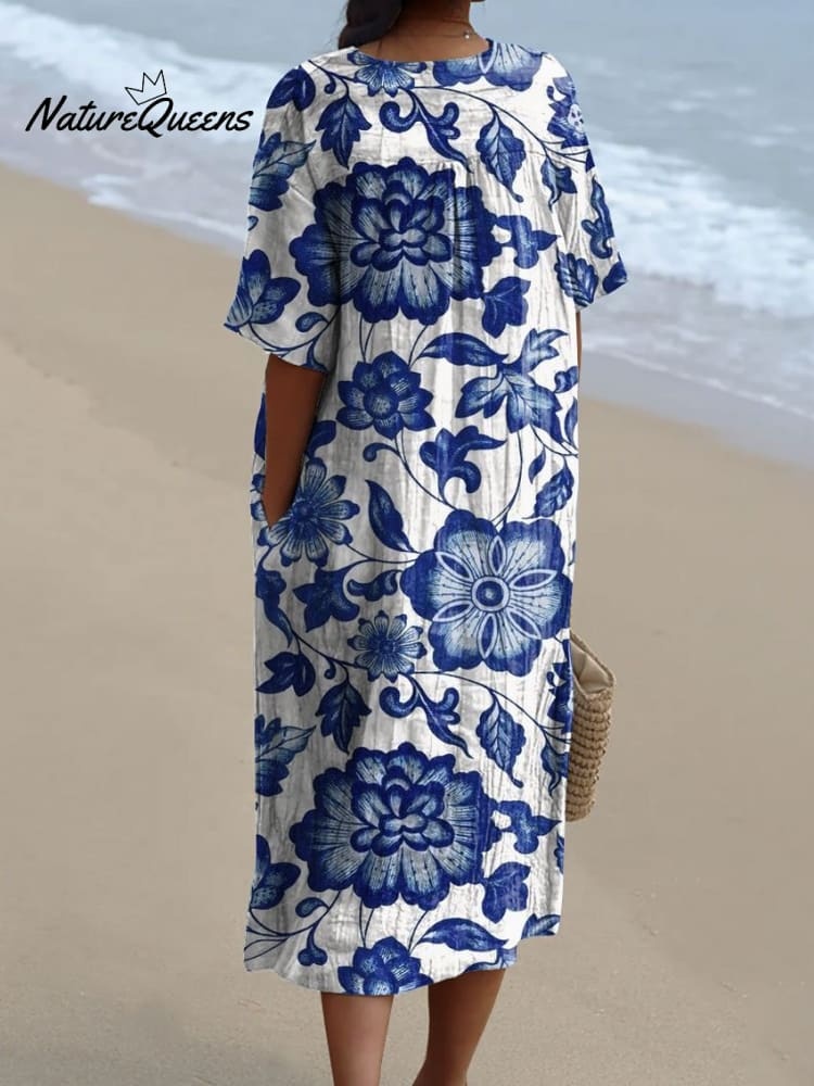 Women's Flower Art Print Flowy Dress