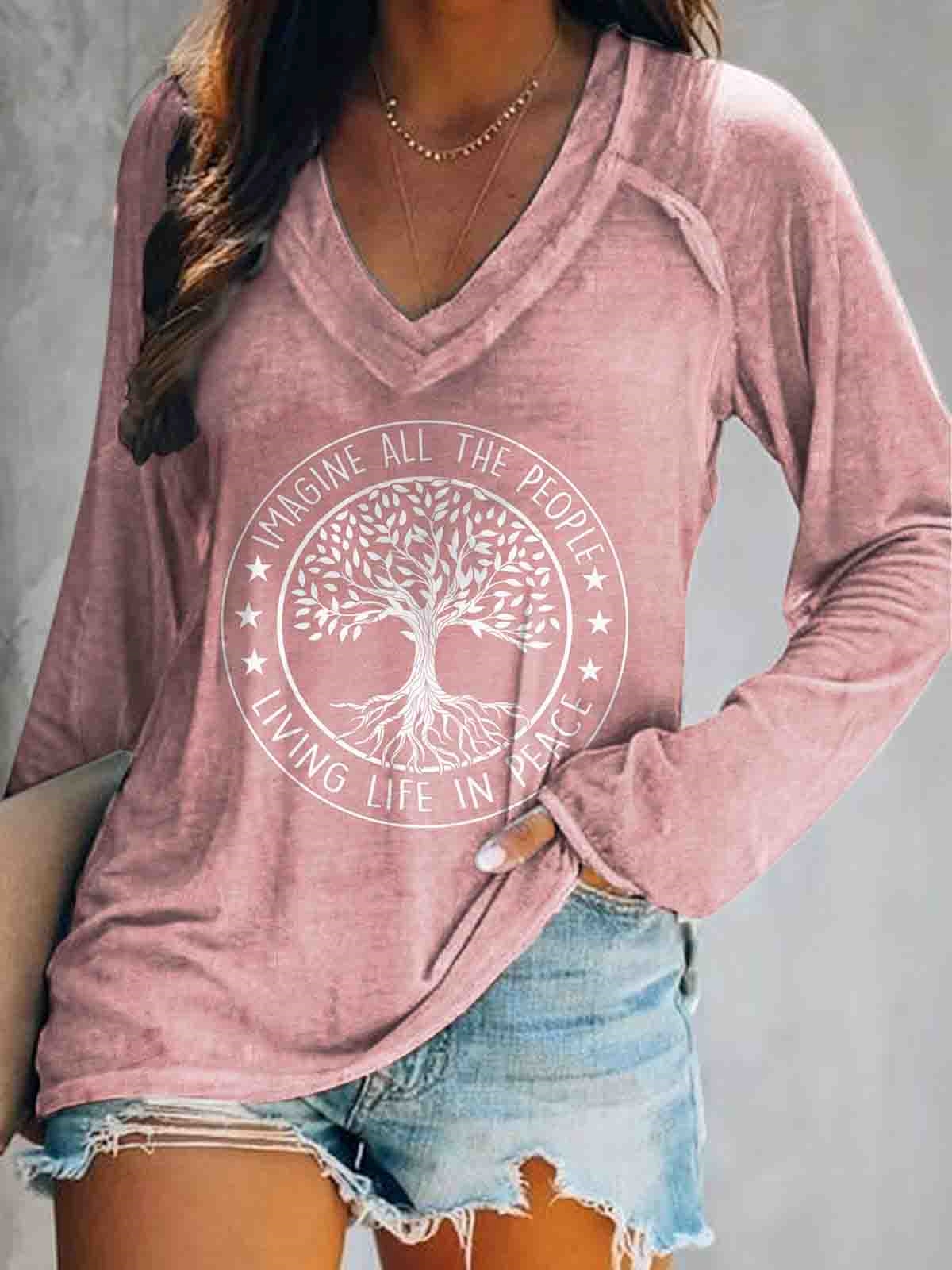 Women's Imagine We All Live In Peace Art Print V-Neck Long Sleeve Blouse